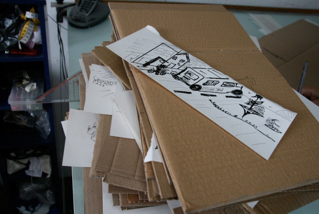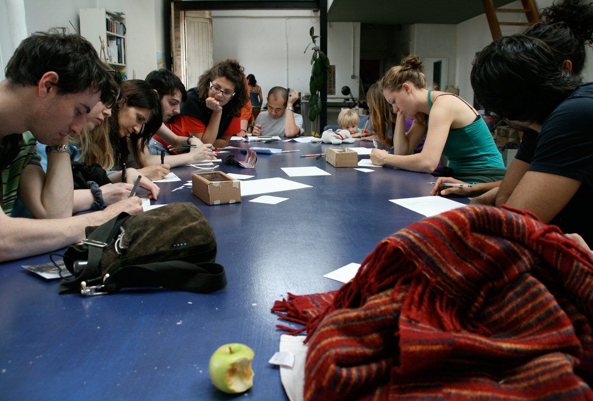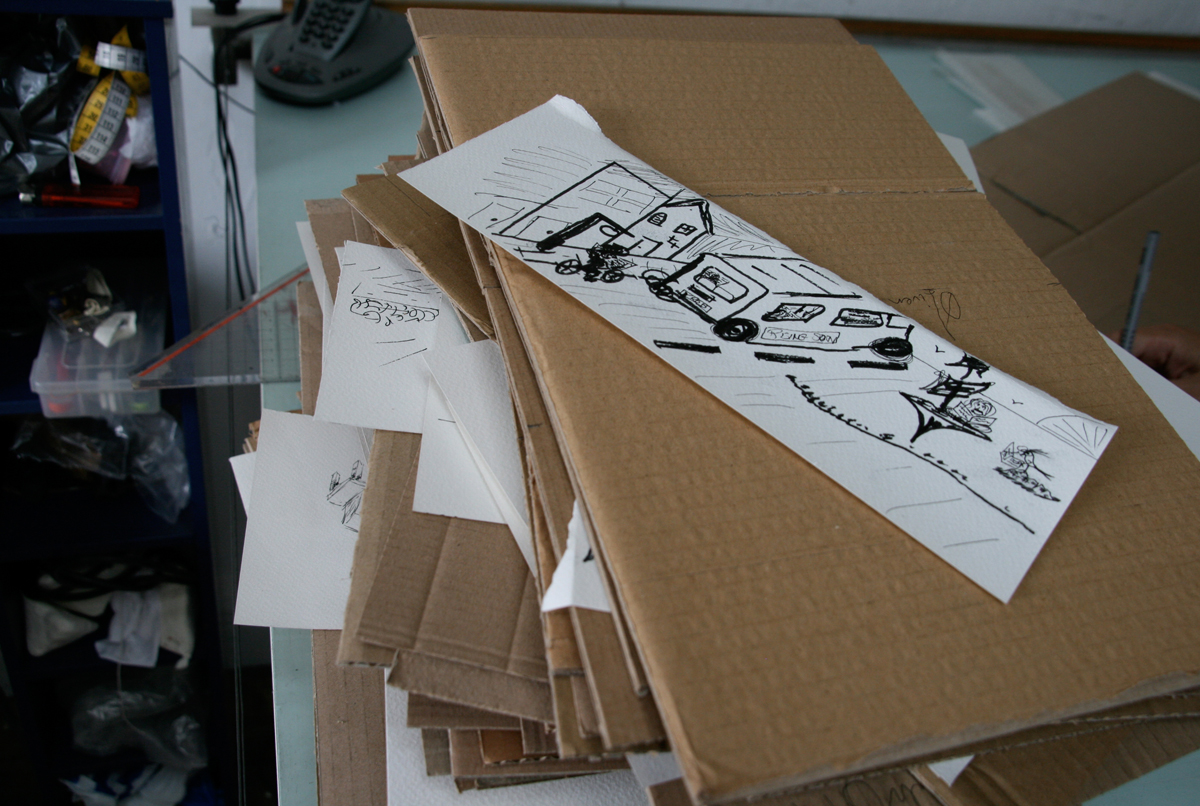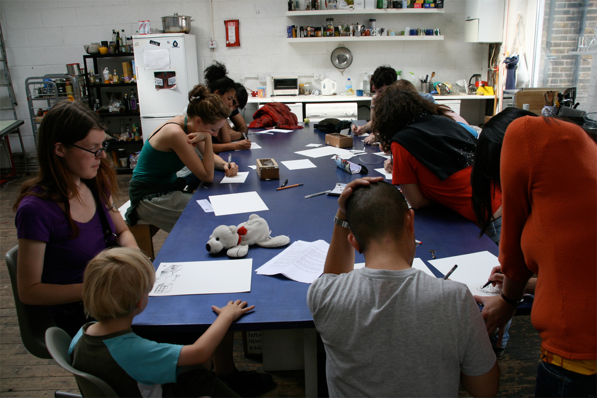During the Hackney Wicked Festival in August 2010 [population flow] took the shape of a cardboard brick news wall where each brick contained a chapter of the news collection. Inside each brick were cut outs of scenarios of how people have access to news and how that varies from an individualistic experience to a mass absorption event.