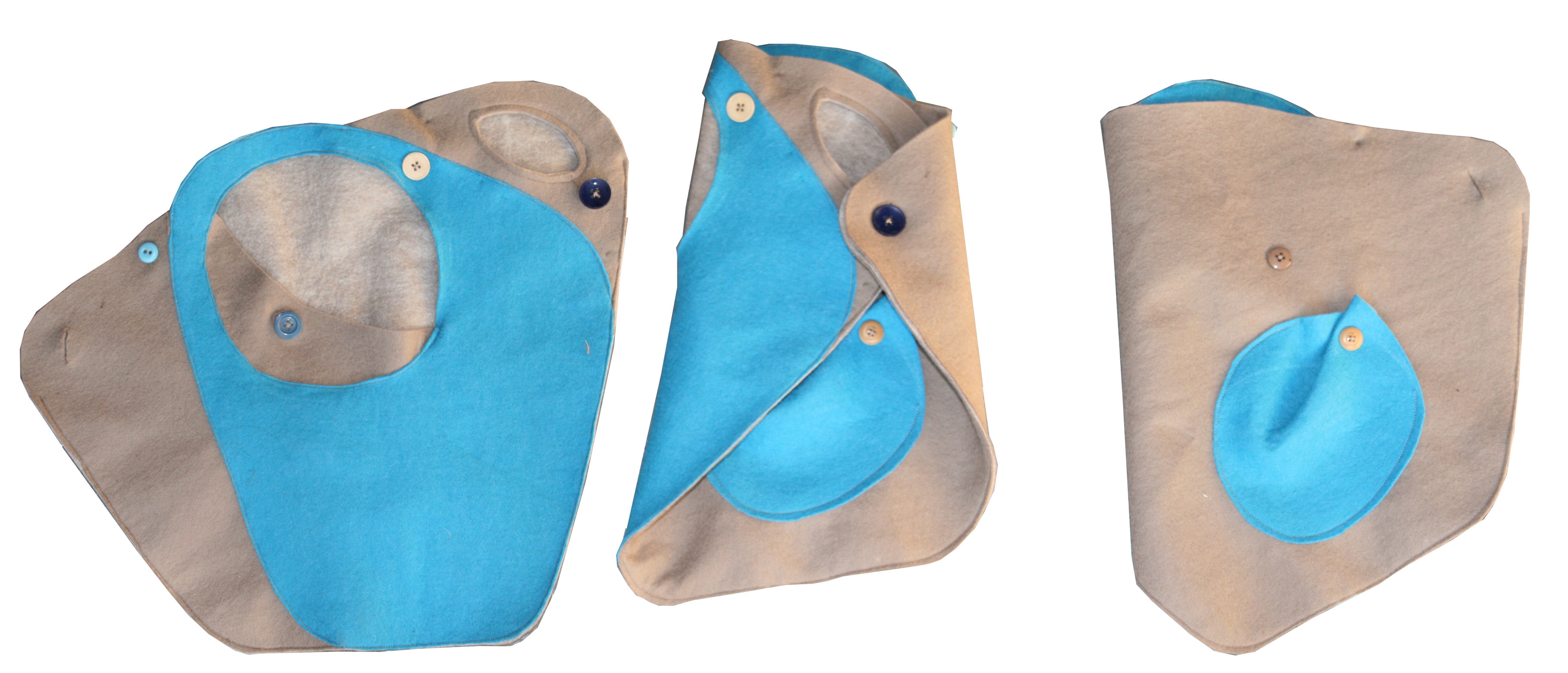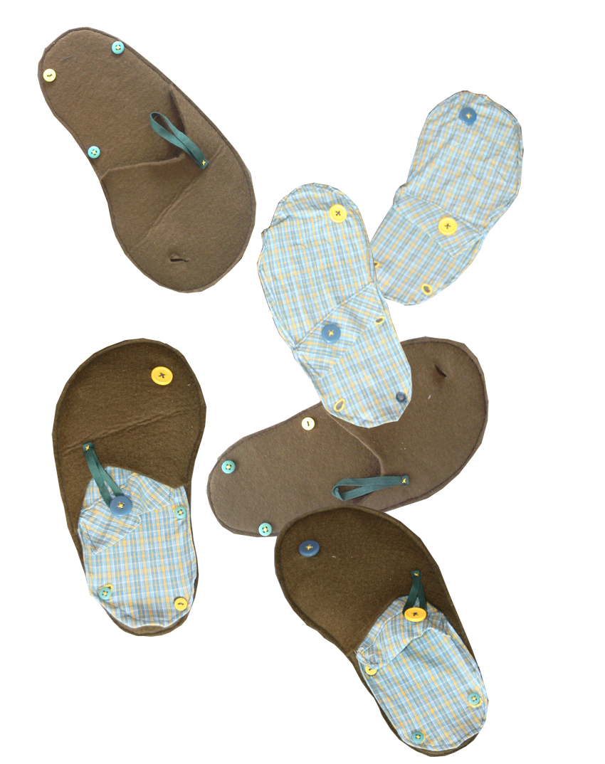 Sleepers made with felt and re-used clothes. The number of layers can be adjusted depending on how cold it is and can easily be removed to be washed.